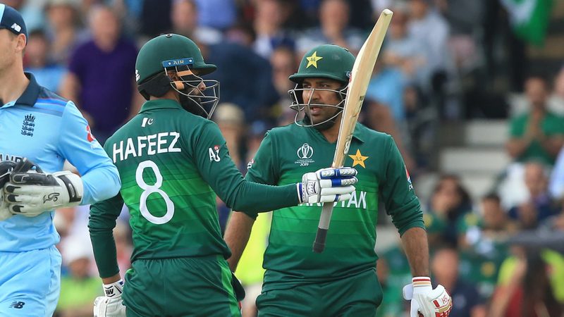 Earlier, Hafeez led a vastly improved Pakistan batting effort that saw Babar Azam (63) and Pakistan captain Sarfaraz Ahmed (55) also making fifties. Pakistan were undone by a barrage of bouncers against the West Indies and England deployed similar tactics after Morgan won the toss, with their attack featuring recalled fast bowler Mark Wood.